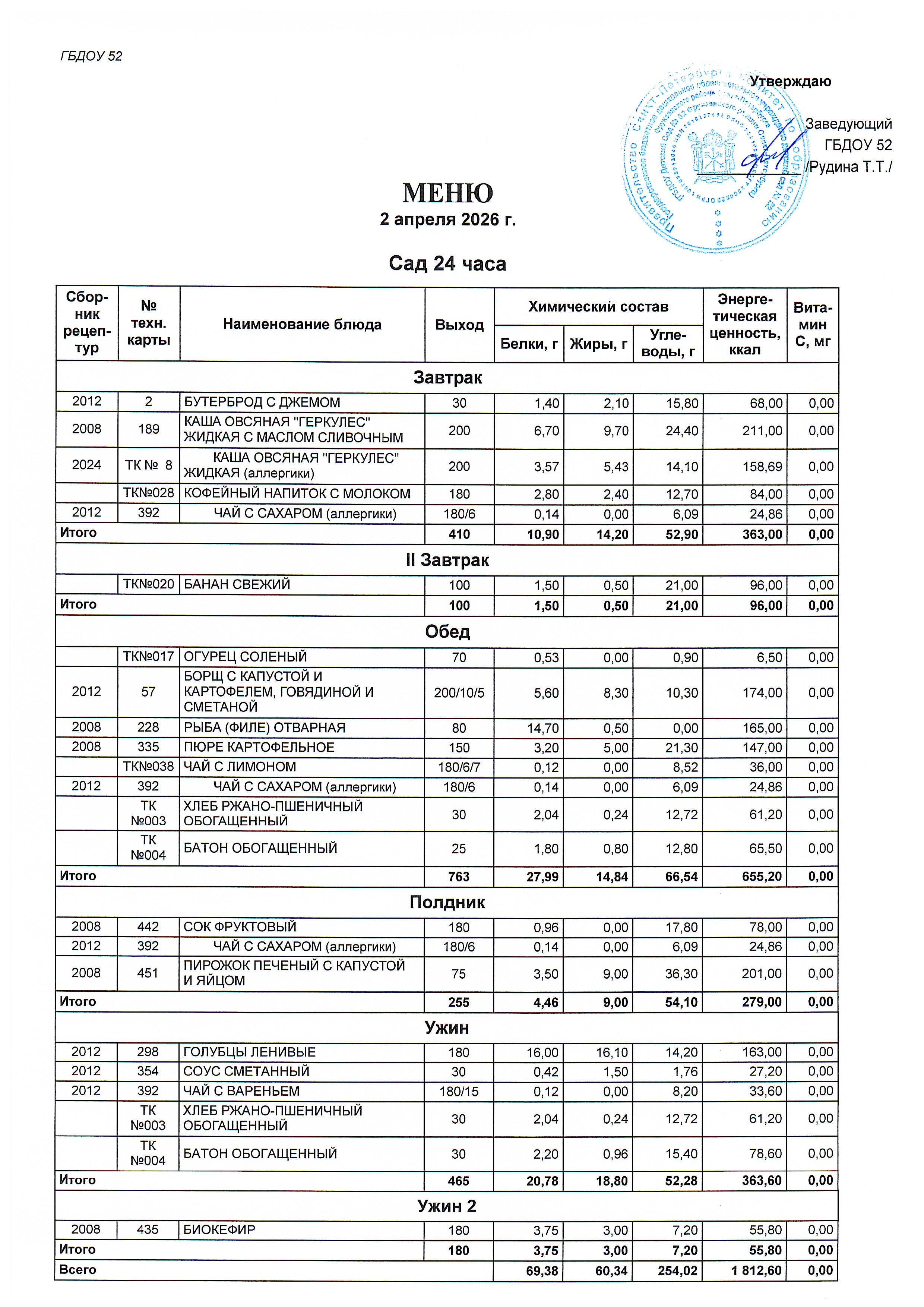 Меню сад (24 часа) на 02.04.2026