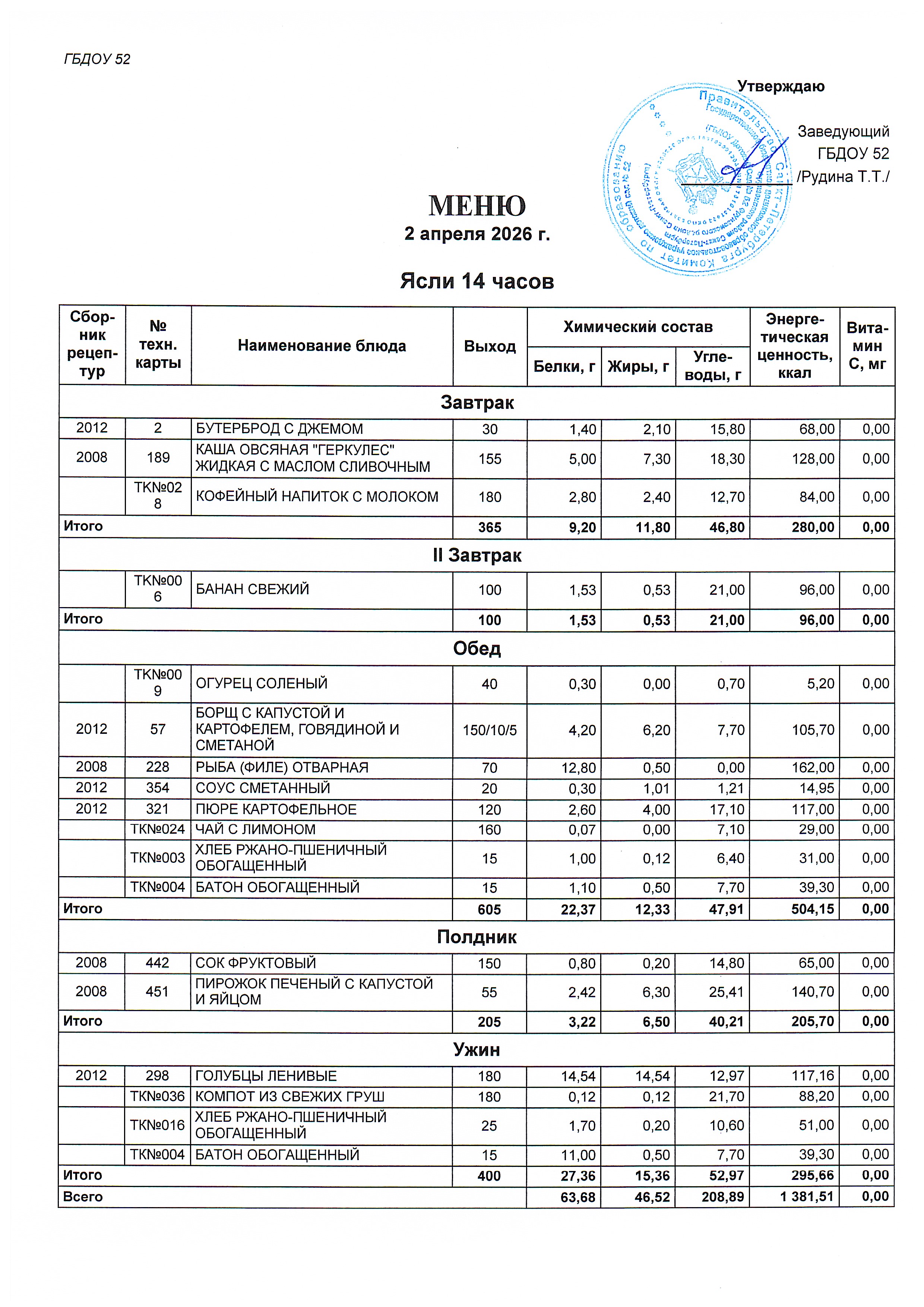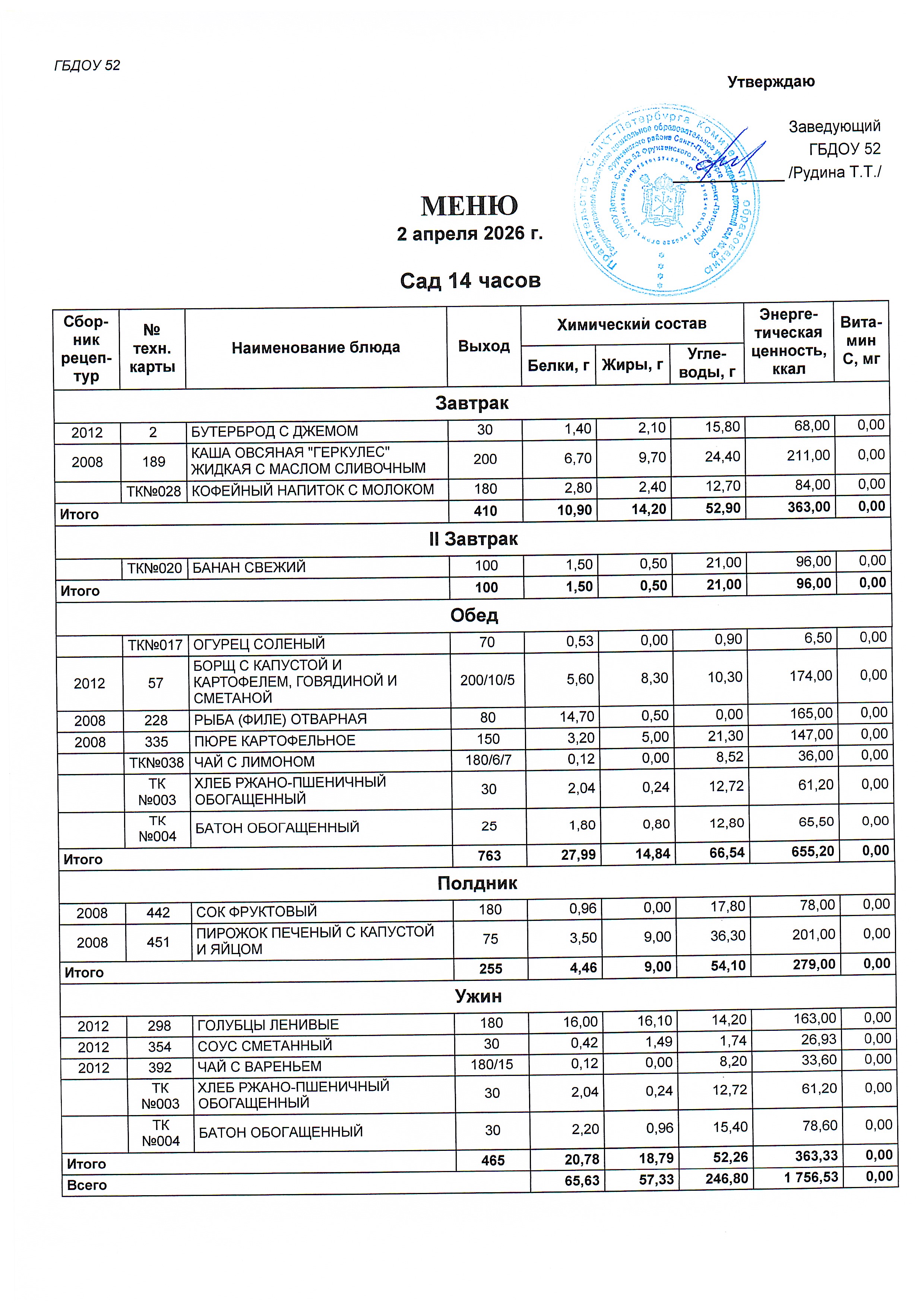 Меню сад (14 часов) на 02.04.2026