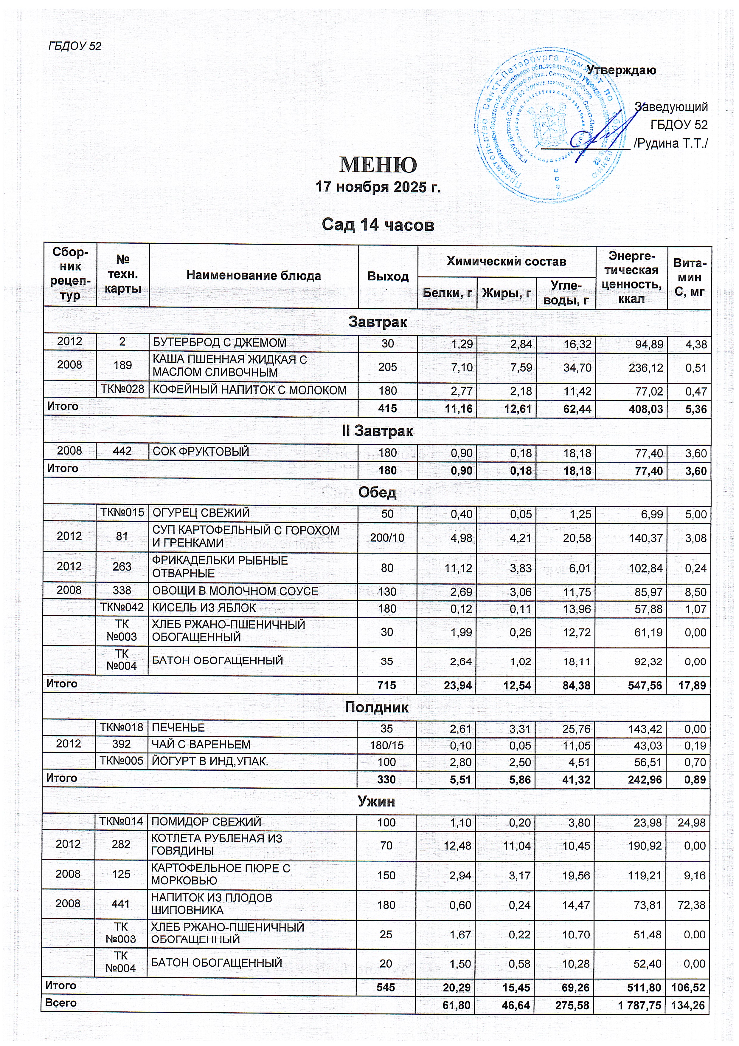 Меню сад (14 часов) на 17.11.2025